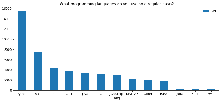 df = pd.DataFrame({'lang':['Python', 'R', 'SQL', 'C', 'C++', 'Java', 'Javascript', 'Julia', 'Swift', 'Bash', "MATLAB", 'None', 'Other'], 'val':[15531, 4278, 7536, 3316, 3828, 3368, 2996, 263, 199, 1777, 2218, 207, 1946]})