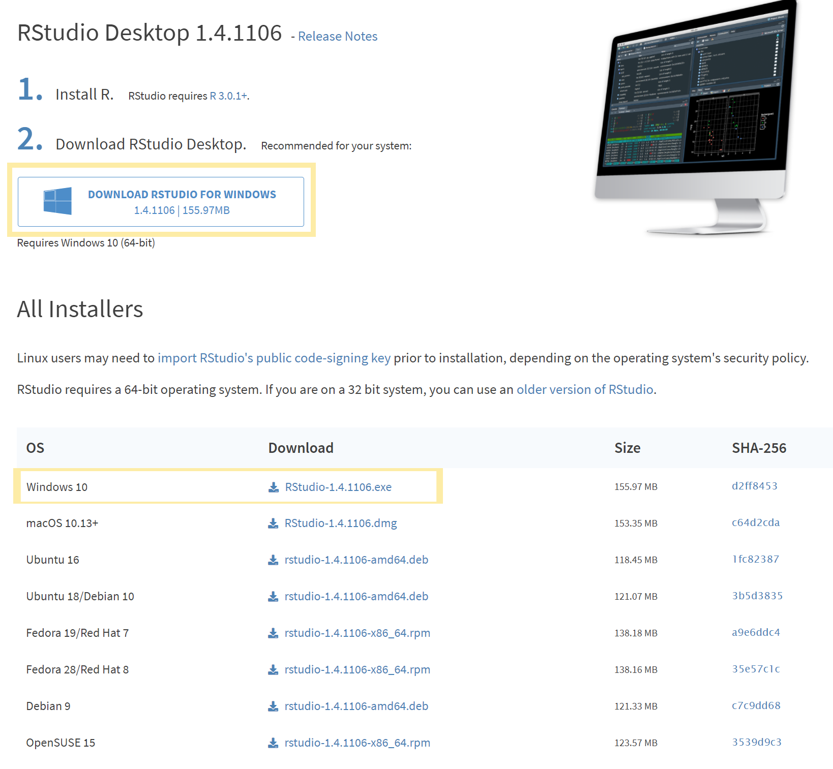 2. RStudioDesktop 밑에 다운로드를 클릭