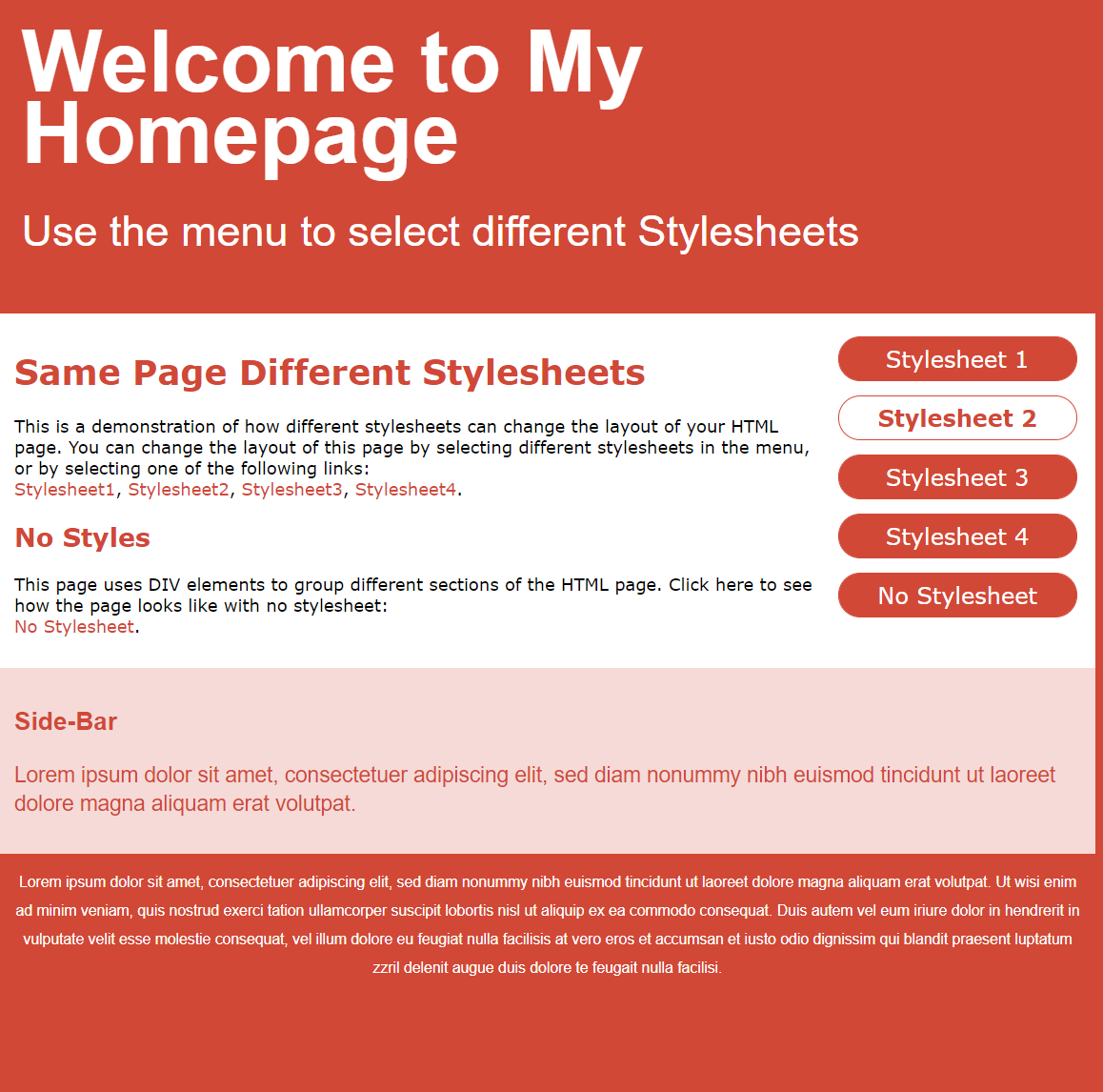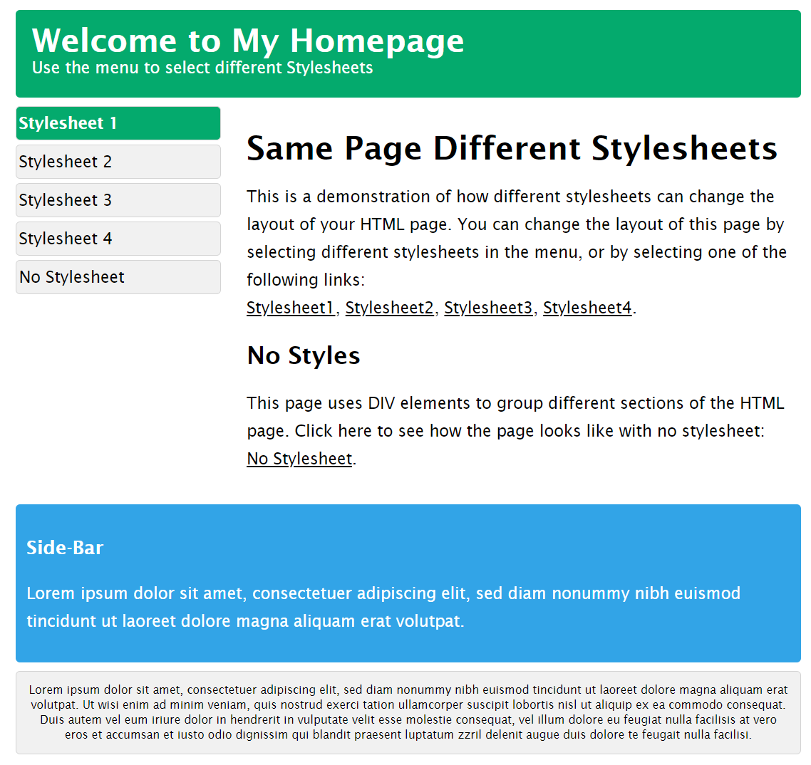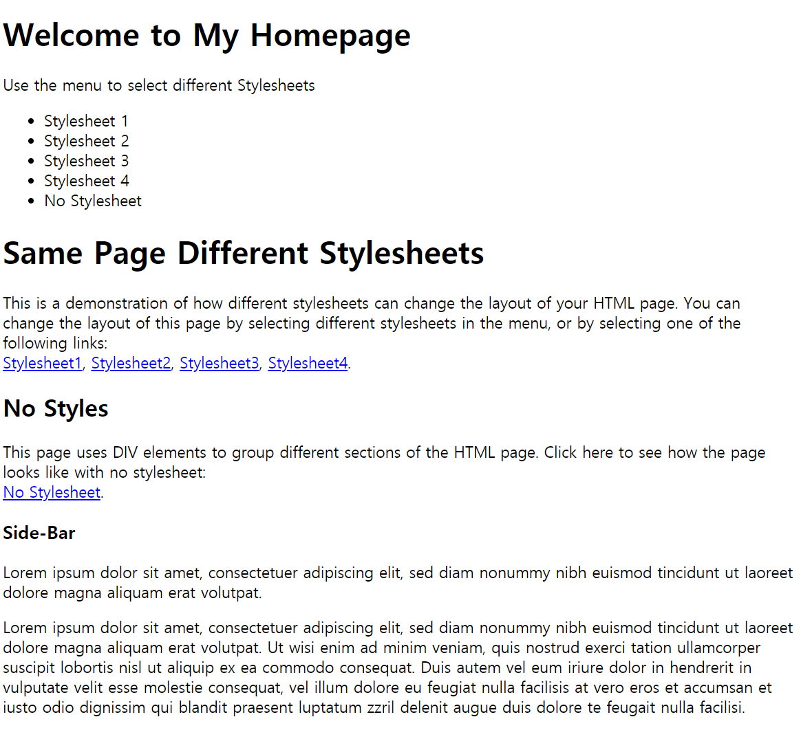 그리고 오른 쪽 두 이미지는 같은 html페이지에 다른 스타일시트를 입힌 웹페이지입니다.