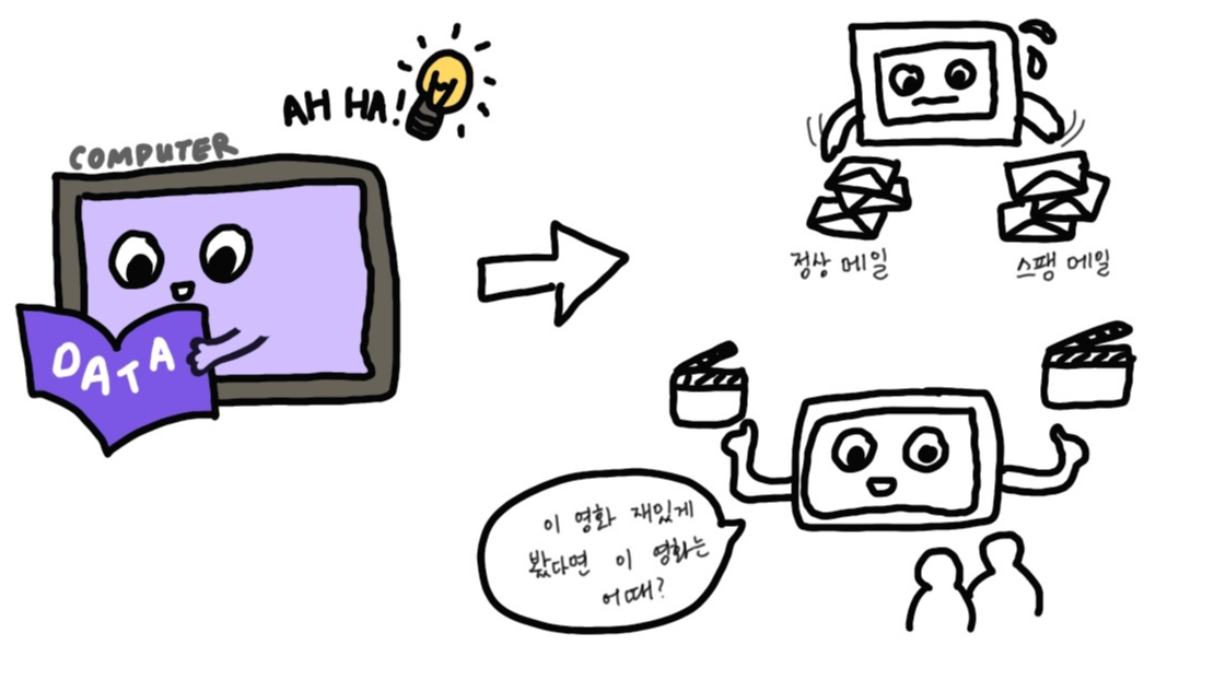 예를 들면 이메일이 들어왔을 때 스팸 이메일을 따로 분류를 해준다거나 내가 본 유튜브/넷플릭스 영상을 토대로 추천 동영상을 보여준다거나.