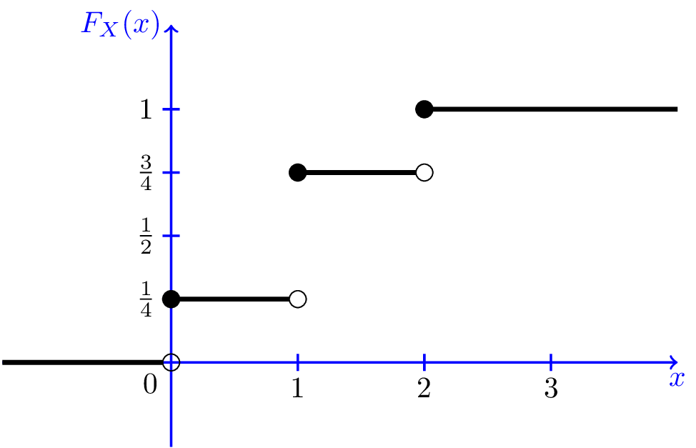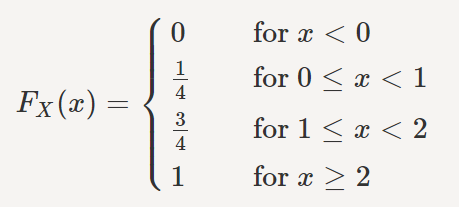 예) 동전을 두 개 던졌을 때 얼굴면이 나오는 경우의 누적 분포 함수 (CDF)