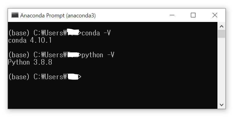 아나콘다 프롬프트에서 콘다 버전은 conda -V 나 conda --version를,