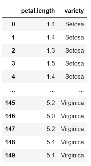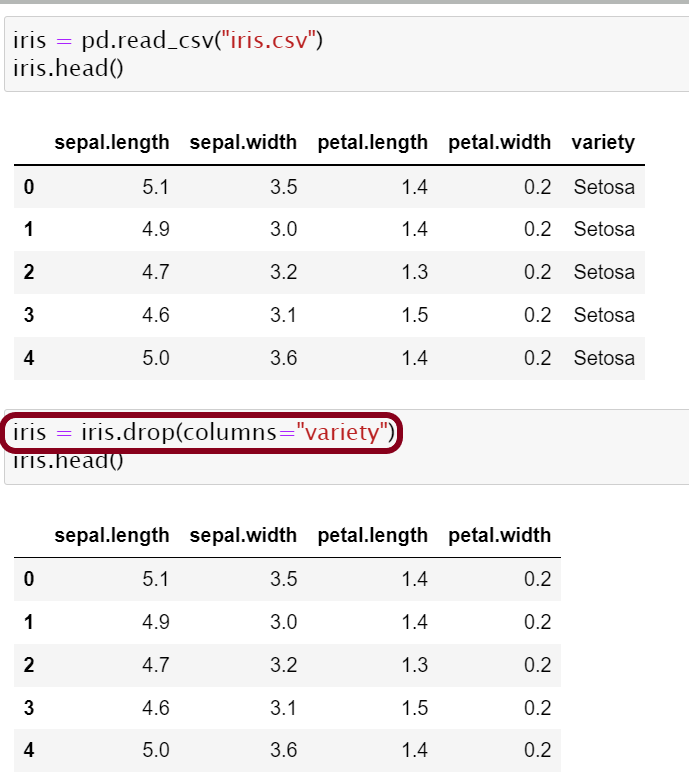 iris.drop('variety', axis=1) 또는 iris.drop('variety', axis = 'columns')