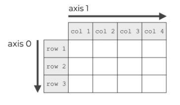 넘파이와 같이 판다스에서 행은 axis=0이며 열은 axis=1로 지정할 수 있습니다.