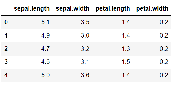 iris 데이터셋의 첫 5줄을 확인하면 아래와 같습니다.