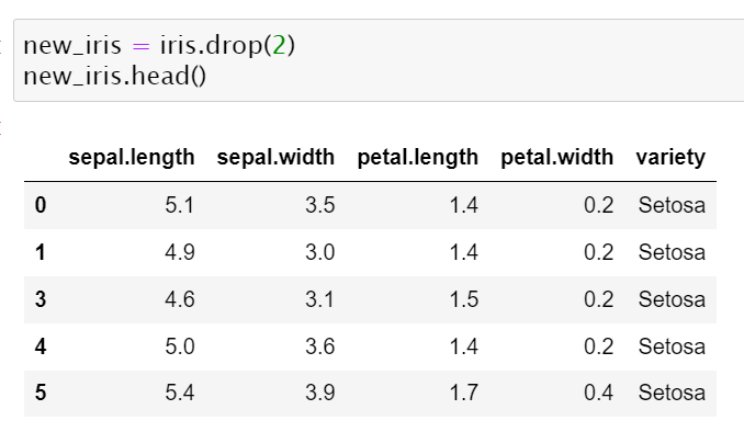iris.drop('variety', axis=1) 또는 iris.drop('variety', axis = 'columns')