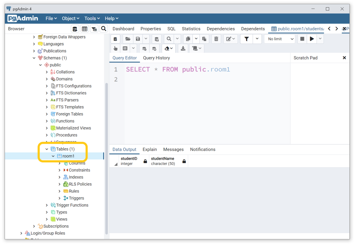 SELECT * FROM roomtwo를 사용하여 테이블을 불러온 걸 확인할 수 있습니다.