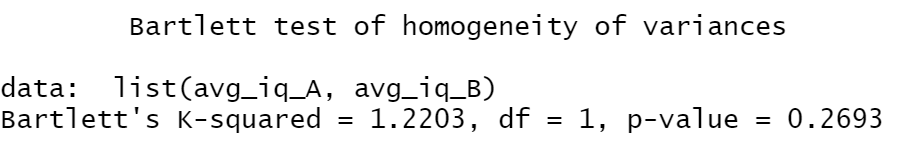 bartlett.test(list(avg_iq_A, avg_iq_B))