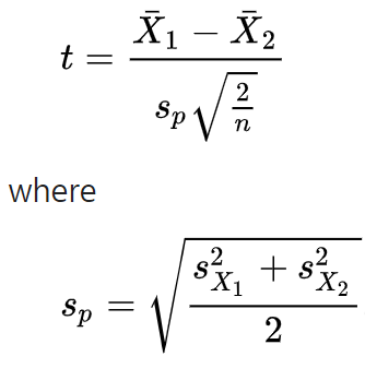 - 동일한 표본 크기 (n)와 분산일 경우의 공식