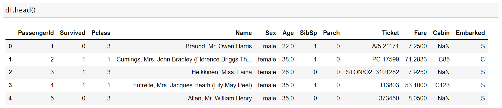 df는 891개의 행과 12개의 열을 가지고 있습니다.