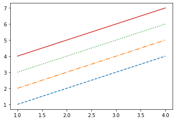 plt.plot(x, x+4, "D:")