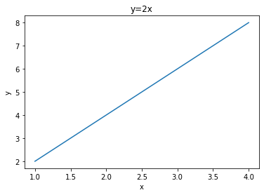 아래와 같이 제목 (title), x축 이름 (xlabel), y축 이름 (ylabel) 함수에 문자열을 넣어 제목과 축 이름을 표시할 수 있습니다.