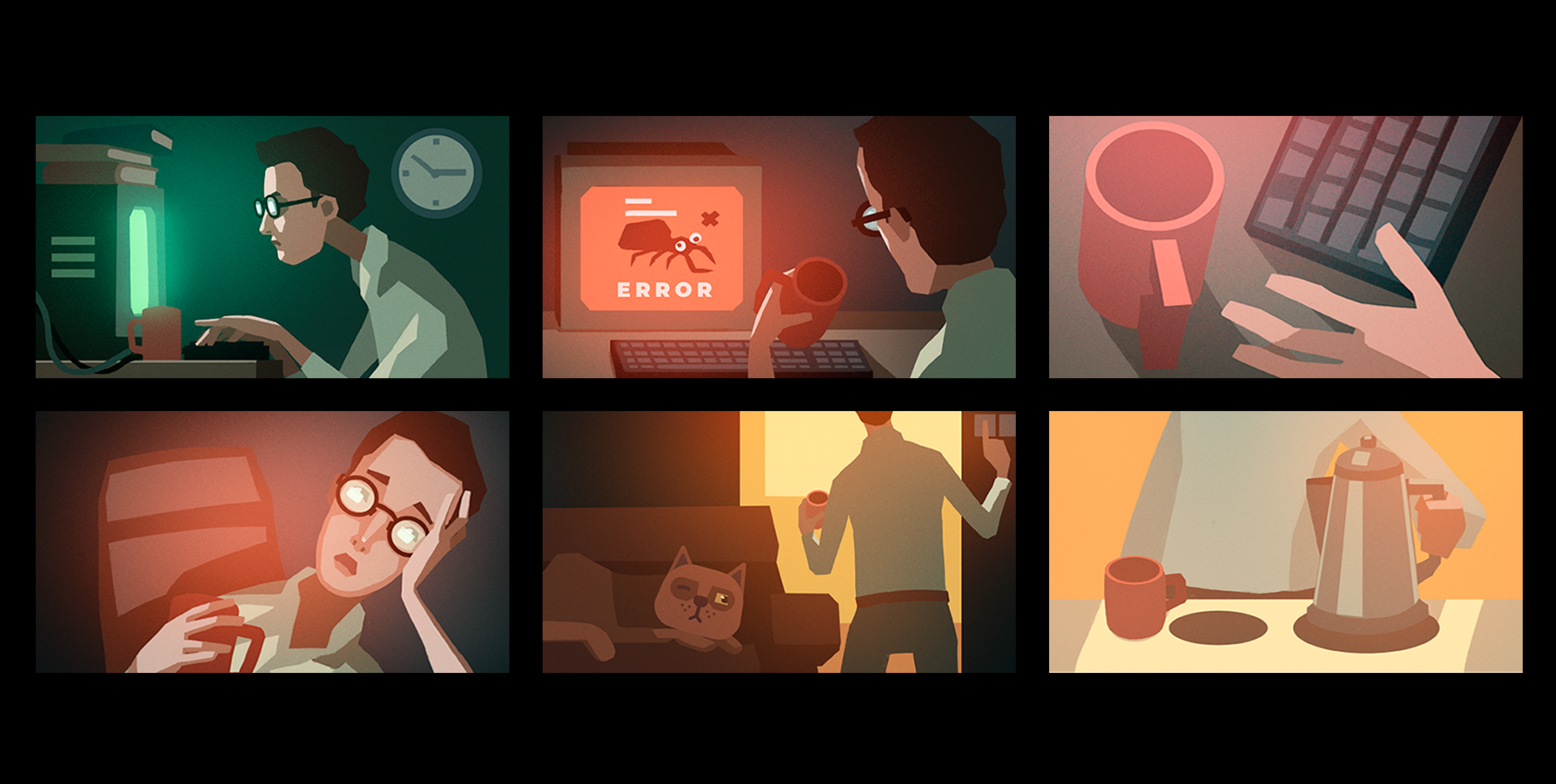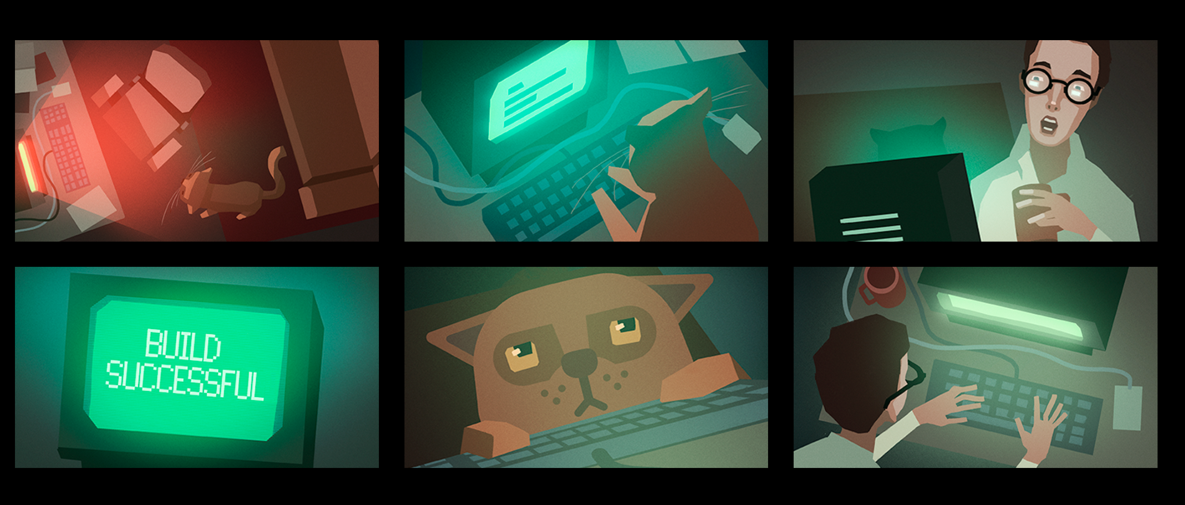 어느날, 프로그램에 버그가 뜨고 잠시 자리를 떠난 동안 천재 고양이가 코딩을 해결해버리죠!