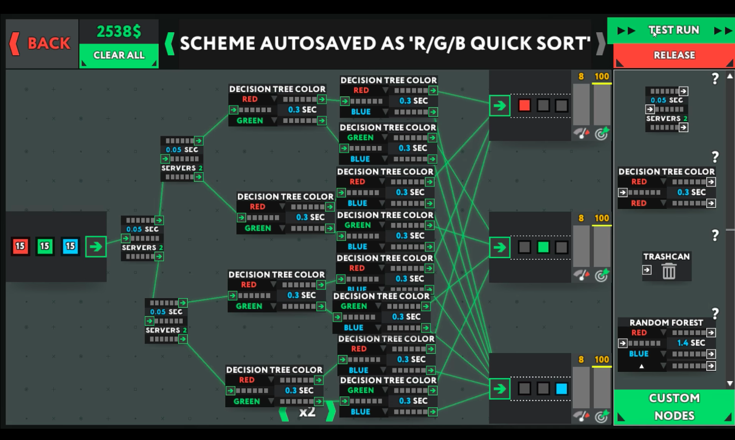 메달 시스템으로 등급이 매겨지며 등급은 사용하는 노드 수와 프로그램 작동 속도에 따라 달라진다. 코딩 테스트처럼 코드가 너무 오래 걸리면 실패!