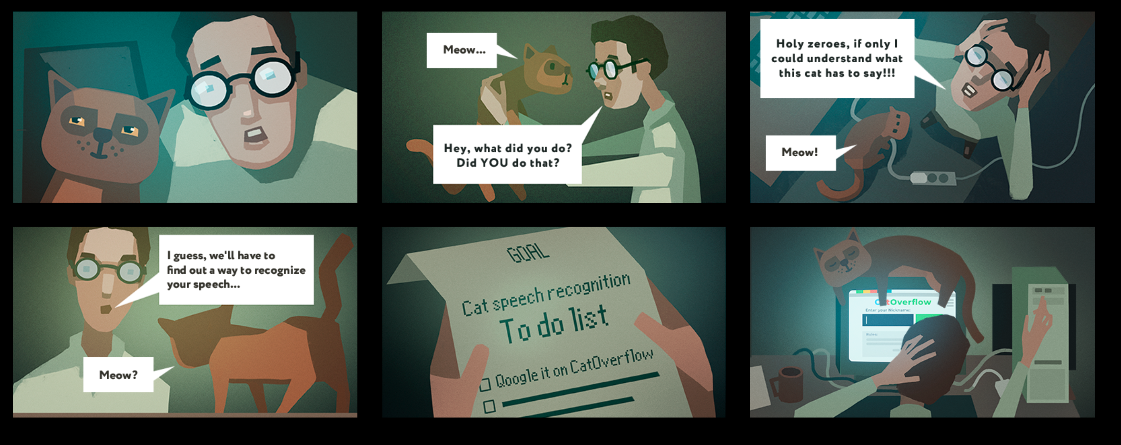 이 사실을 알게 된 주인공은 고양이의 도움을 받기 위해 고양이 언어 번역 시스템을 만들기 시작합니다!