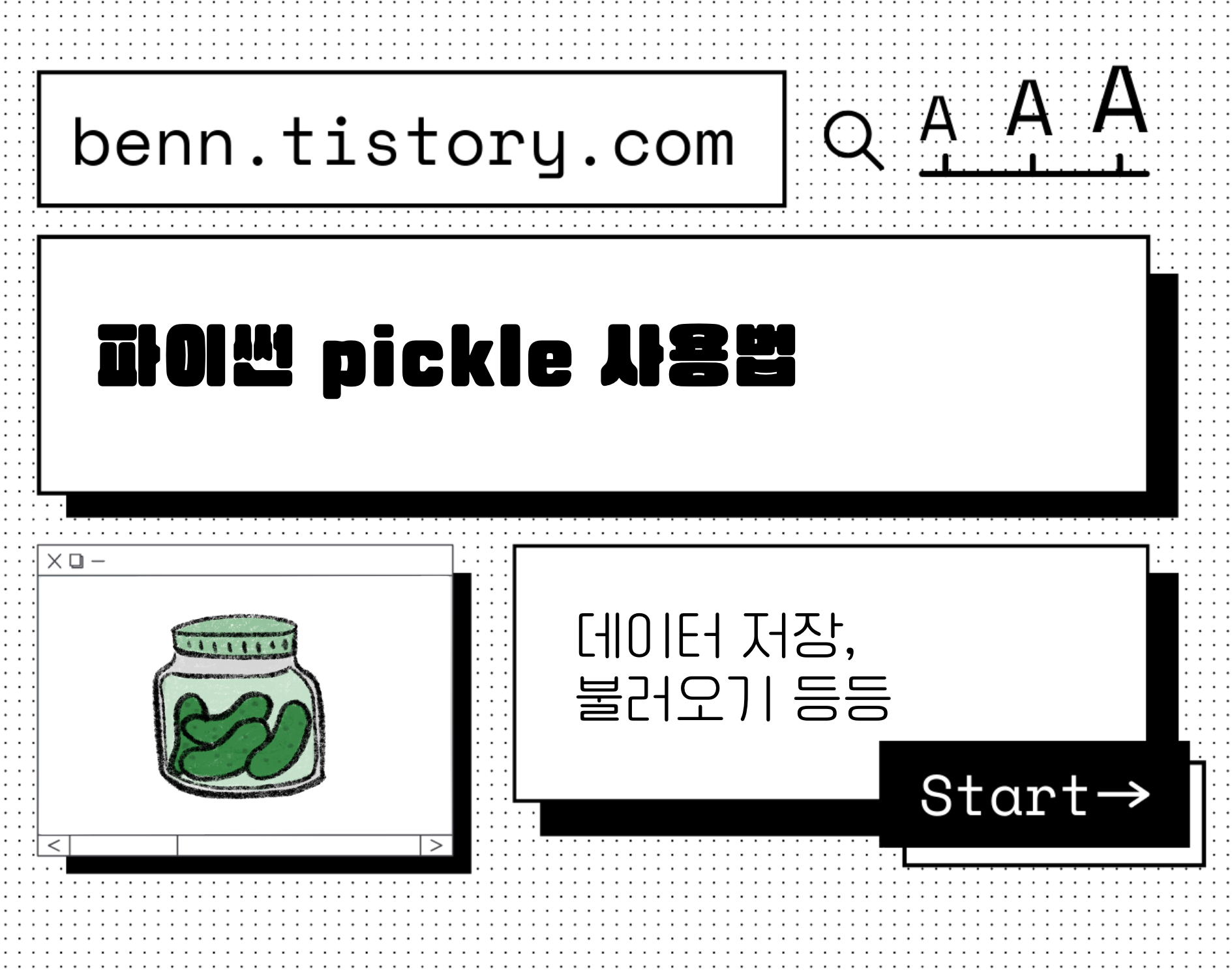 파이썬 객체를 파일로 변환하는 과정은 Pickling (피클링)이라고 하고 반대로 파일을 불러올 경우 Unpickling이라고 합니다.