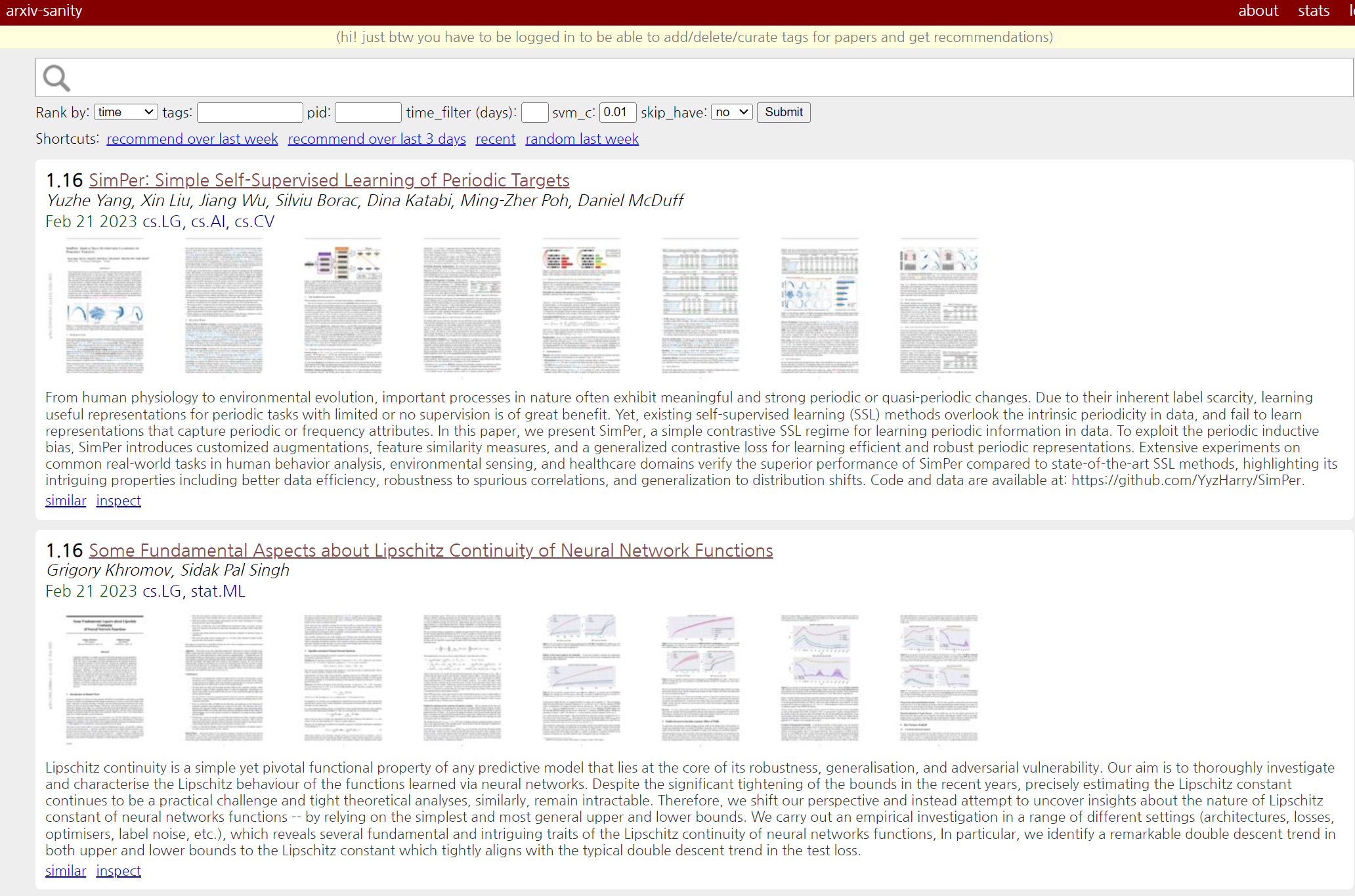 7.arxiv-sanity- 로그인하면 관심 있는 분야의 최신 논문을 모아 보여주는 사이트.