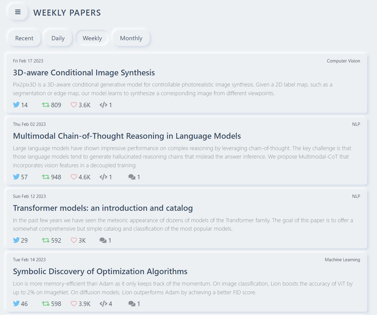 주로 트위터나 소셜미디어에 핫한 논문을 모으다 보니 뜨는 논문이 비슷비슷하다.