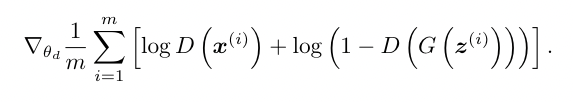 여기서 D(x)는 실제 데이터 x에 대한 구분자의 예측, D(G(z))는 생성된 데이터 G(z)에 대한 구분자의 예측입니다.