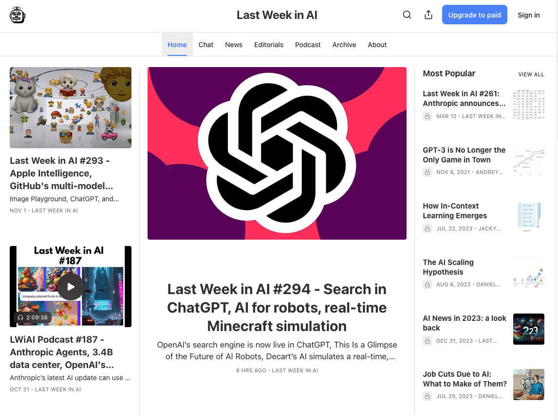 이 팟캐스트 진행자는 풀타임 직업을 가진 상태에서 이것을 사이드 프로젝트로 운영 중인데, 정말 존경스러울 따름이다. 나처럼 풀타임으로 일하고 남는 시간엔 눕기 바쁜 사람으로서는 대단하다고 느낀다. 두 시간 정도의 팟캐스트를 위해 얼마나 많은 리서치를 하는지 감탄하게 된다. 덕분에 나는 리서치 없이도 편하게 AI 세상이 어떻게 돌아가는지 알아갈 수 있어 정말 감사하다.