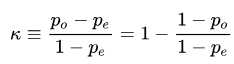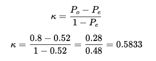 - p_e: 우연히 일치할 가능성을 나타내는 기대 일치 비율