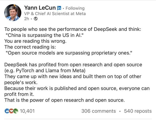 성능 면에서는 아직 R1 모델이 ChatGPT와 같은 모델을 훨씬 능가한다고 보기 어렵지만, 상대적으로 작은 예산으로 개발되었다는 점에서 주목할 만한 것은 확실하다. 게다가 오픈 소스로 공개됨에 따라 미국 중심의 AI 기업들이 예상했던 만큼의 수익을 얻지 못할 가능성을 시사하며, 이로 인해 더욱 화제가 되고 있는 것 같다.
